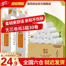 清风 无芯卷纸整箱原木经典3层70克10卷3提共30卷马蹄莲婴儿纸巾卷筒纸手纸厕所纸卫生纸