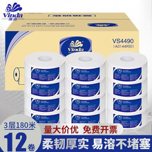 维达(Vinda) 维达3层180米卫生纸 商用大盘纸有芯大卷纸擦手纸厕纸12卷整箱