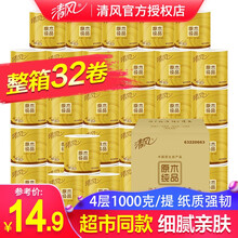 【包邮】清风卷纸原木金装4层8卷提 卷筒纸有芯卫生纸巾餐巾纸家庭装 多规格可选 8卷*2提