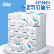 爱恩倍干湿两用抽纸巾家用卫生纸巾面巾纸婴儿原木4层300张实惠装 30包