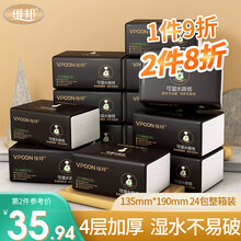 维邦抽纸可湿水纸巾4层408张24包擦手纸面巾纸餐巾纸整箱纸抽卫生纸