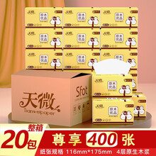 天微 抽纸(400张足量)*30包 4层加厚 家用原木面巾纸餐巾纸卫生纸斤抽擦手纸面纸 金装20包【116*175mm*400张】