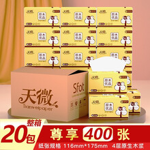 天微 抽纸巾400张 4层家用原木擦手纸餐巾纸抽卫生纸 20包整箱【116mm*175mm】