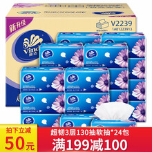 【满199减100】维达抽纸整箱超韧3层130抽软抽*24包纸巾(小规格) 整箱销售面巾纸婴儿卫生纸