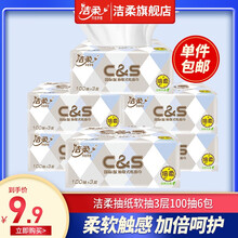 洁柔抽纸软抽3层100抽6包餐巾纸抽面巾纸卫生纸巾抽擦手纸散包和提装随机发货