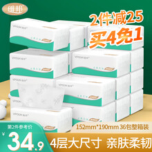 维邦纸巾抽纸整箱大包纸4层304张纸抽家用实惠装卫生纸擦手纸大号面巾纸36包