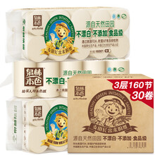 京东超市 泉林本色无芯卷纸 不漂白3层160节*30卷(精选原生浆 本色卫生实芯卷厕纸巾)整箱销售