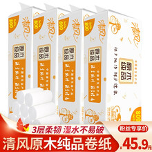 清风三层无芯卫生纸卷筒纸原生木浆家用厕所用卷纸无香手纸厕纸10卷800g/提装*4提