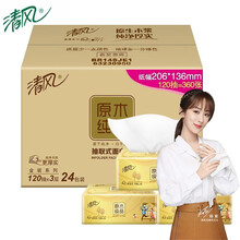 清风抽纸 原木金装软抽纸巾24包360张纸巾抽家庭装 整箱销售