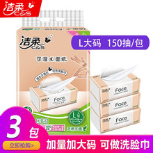 洁柔抽纸可湿水面家庭无香FACE150抽3层3包L大码餐纸巾实惠装