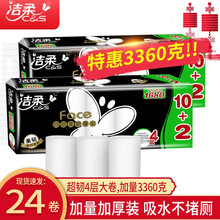 洁柔无芯卷纸4层Face可湿水厕所手纸卫生大卷纸巾1680g实惠装1提2提 140克*24卷(2提)