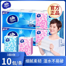 维达卷纸整箱3层升级4层蓝色经典卫生纸手纸巾家用卷筒纸厕纸 花之韵手帕纸10包