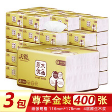 天微 抽纸巾400张 4层原生木浆本色擦手纸餐巾纸抽 400张*3包