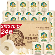 京东超市 泉林本色卷纸 3层270节*24卷(源自天然田园易溶不堵塞马桶本色卫生厕卷纸巾)