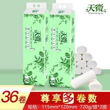 天微 18卷卫生纸4层 原木720g无芯卷纸厚韧速溶厕纸擦手纸卷筒纸 36卷(2提共1440g)