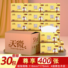 天微 抽纸(400张足量)*30包 4层加厚 家用原木面巾纸餐巾纸卫生纸斤抽擦手纸面纸 金装30包【116*175mm*400张】