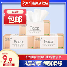 洁柔FACE抽纸巾抽取无香M中号粉色Face100抽 3包