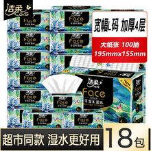 洁柔抽纸面巾纸4层加厚18包大号码无香FACE可湿水餐擦手家用庭装 自然无香 18包*4层