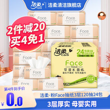 洁柔抽纸洗脸巾Face3层120抽24包餐巾纸卫生纸抽纸整箱棉柔巾