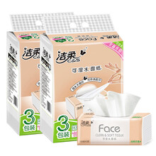 洁柔抽纸可湿水面纸3层120抽face婴儿纸巾餐巾纸擦手纸抽 两提6包