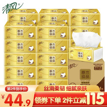 清风 满99减50【压花印花加大加厚M码】抽纸整箱24包120抽3层金装原木纯品包邮纸巾卫生纸