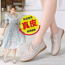 地支星 单鞋女夏季网红镂空透气鞋女粗跟小皮鞋女套脚懒人鞋增高休闲鞋时尚一脚蹬真皮鞋子 TSDF-305 米色镂空 37