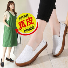 橙哥 鞋子女单鞋女真皮女鞋孕妇防滑学生时尚百塔潮流韩版平底平跟低跟舒适软底女士护士女生妈妈鞋 TSDF-890白色 37