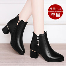 真皮单鞋女2021春季新款女鞋子女士皮鞋英伦风百搭中跟短靴粗跟妈妈鞋时尚马丁鞋皮靴女春鞋 9761-2 黑色不加绒(头层牛皮) 36