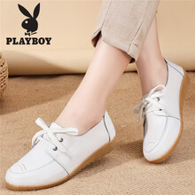 花花公子(PLAYBOY)女鞋子套脚妈妈鞋平底休闲系带小皮鞋百搭懒人一脚蹬软底护士豆豆单鞋 女 1083 白色 39