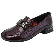 飞之健起【超值新款】高档品牌乐福鞋女漆皮英伦风小皮鞋真皮一脚蹬平跟大码2021春秋新款单鞋春 酒红色 37