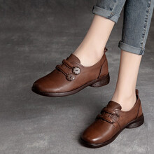 亲情夫人春季新款牛皮复古女鞋舒适牛筋软底妈妈鞋中老年防滑平底单鞋女 棕色 38