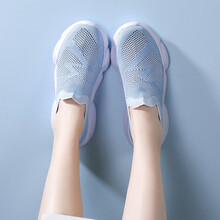 飞之健起【轻奢好品质】高档品牌夏季透气网鞋女轻便软底一脚蹬网面孕妇鞋大码脚浮肿胖脚宽脚女鞋 浅月 38