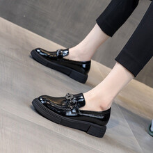 法国Montagut梦特娇 真皮乐福鞋女新款小皮鞋英伦风小单鞋 黑色 38