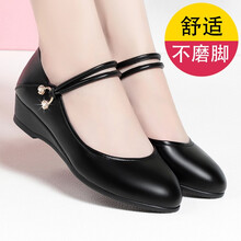 湘花之王 坡跟皮鞋女妈妈鞋单鞋软底2021年新款中年春秋季女鞋子中跟女士皮鞋一字扣带 【320坡跟】黑色 39码