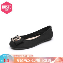大东2021新款春季甜美平底方跟蝴蝶结方扣套脚浅口鞋女鞋21C3010A 黑色 39码