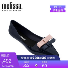 Melissa梅丽莎JASON WU合作款舒适低跟双色蝴蝶结尖头单鞋32740 蓝色/粉色 38码
