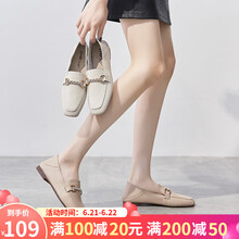 ZHR单鞋女平底法式少女风摩登复古乐福鞋女水钻马衔扣气质方头女鞋甄选牛头 舒适柔软 米色 38码