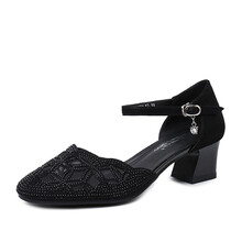 【夏上新】女鞋2021新款粗中跟鞋子春夏网纱时尚凉鞋尖头单鞋女 E718-46黑色(圆头款) 37