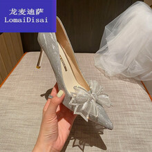 高档轻奢金木鱼婚鞋女2021年新款蝴蝶细跟高跟鞋水晶银色婚纱新娘公主仙女单鞋夏气质透气女鞋 银色6CM 31