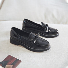艾斯臣 ACESC 单鞋女2021年春秋季小皮鞋女鞋子复古休闲平底韩版百搭粗跟学生女鞋3C03Q 黑色 36
