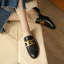 ZGR网红马衔扣拖鞋单鞋平底懒人鞋包头半拖鞋女外穿穆勒鞋女 黑色 39