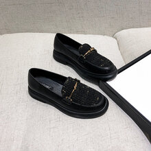 绍笛高档品质上新乐福鞋女2021年春季新款百搭中跟英伦风小皮鞋平底单鞋一脚蹬鞋女 黑色-单里 37