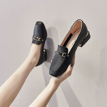 英伦小香风小皮鞋女2021新款春秋低跟单鞋女粗跟百搭一脚蹬乐福鞋 黑色 38
