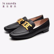 莱尔斯丹 休闲深口饰扣低跟平底乐福鞋女单鞋2M08008 黑色 BKK 37