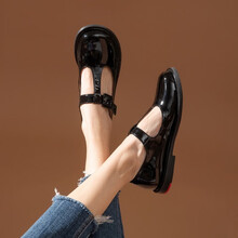 BeauToday2021秋季新款玛丽珍鞋女鞋平底浅口单鞋小香风JK鞋头层牛漆皮时尚百搭T型带鞋子 经典黑 37