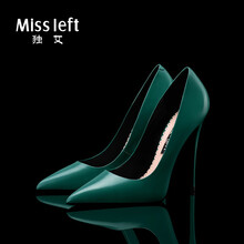 独女2021夏季新款性感12cm尖头胎牛皮墨绿色高跟鞋女细跟浅口单鞋 墨绿色12CM 36