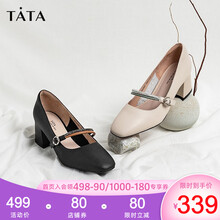 Tata他她秋季商场同款牛皮革高跟玛丽珍女鞋水钻方跟OL通勤WAH03CQ0 米白 35