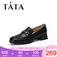 Tata他她秋季方头舒适英伦风乐福鞋方跟时尚女单鞋DSQANCM0 黑色 38