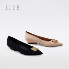 ELLE尖头浅口法式浪漫低跟女单鞋2021春夏新款金属扣百搭时尚女鞋 杏色 37