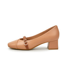 千百度女鞋春夏复古奶奶鞋粗跟一字带休闲单鞋A9487226WX 杏色 37